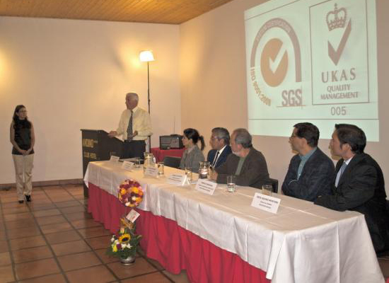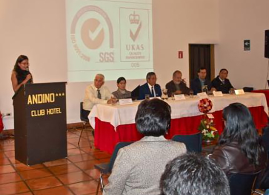 El día jueves 18 de febrero tuvo lugar, en el auditorio del Andino Club Hotel, la ceremonia de entrega, a cargo de la señorita Lilí D'Anglés representante de SGS Perú, de la Certificación ISO 9001:2008 a la Empresa de Turismo Andino, representada por su gerente general el Sr. Mario Holenstein.